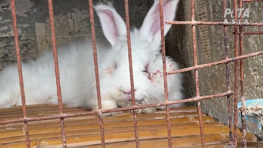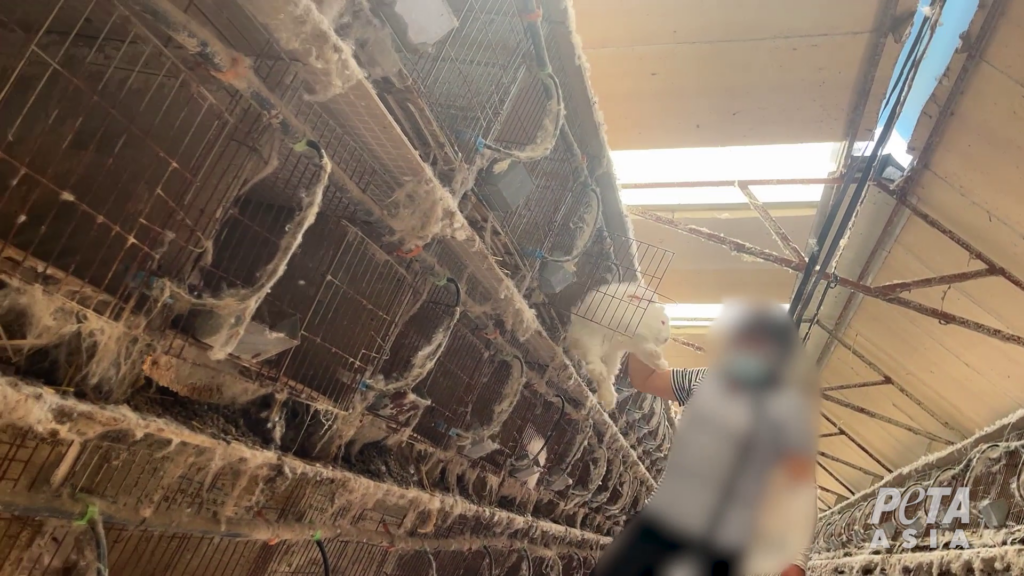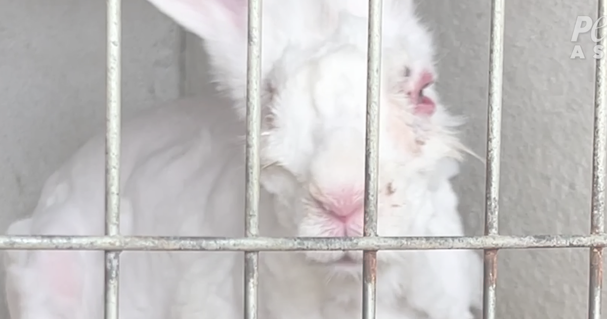 PETA Asia は2025年、新たに中国のアンゴラウサギ農場の内部映像を公開しました。