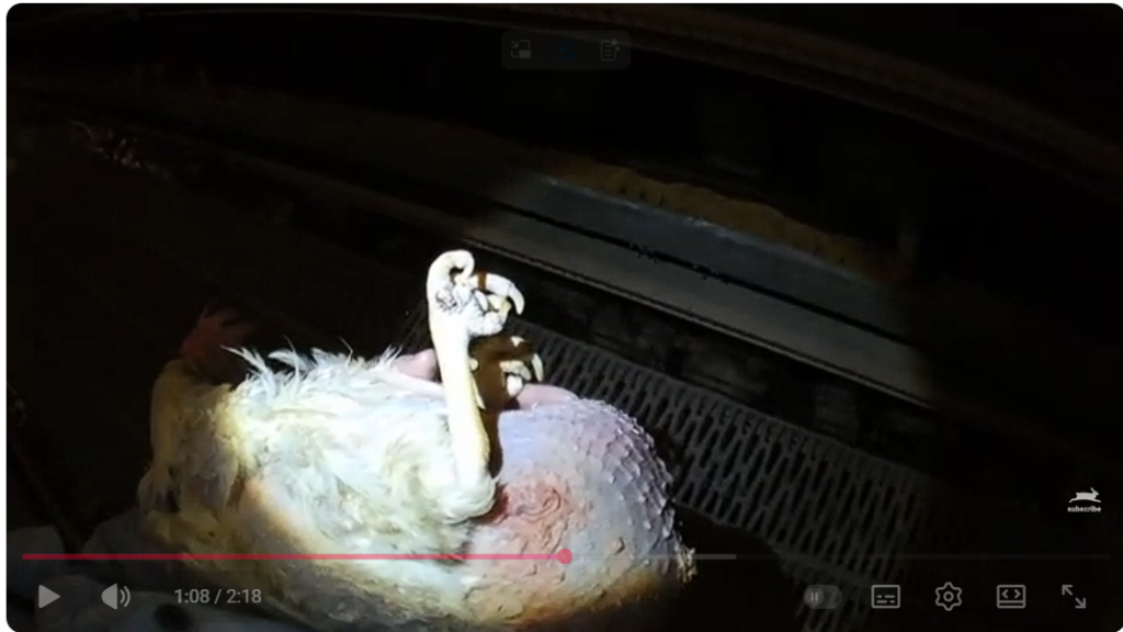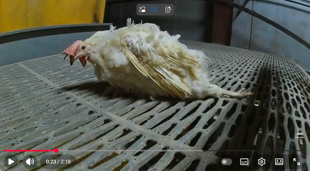• こうした鶏の多くは十分な治療を受けることなく「入院ケージ」に移され、そこで死亡し、遺体が片づけられないまま、他の鶏が死骸の上に立たされていたと説明されています。